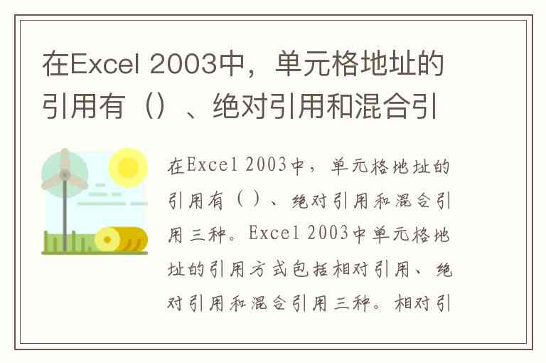 在Excel 2003中,单元格地址的引用有()、绝对引用和混合引用三种。