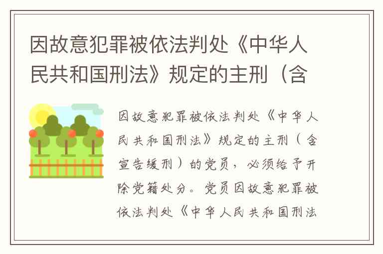 因故意犯罪被依法判处《中华人民共和国刑法》规定的主刑(含宣告缓刑)的党员,必须给予开除党籍处分。