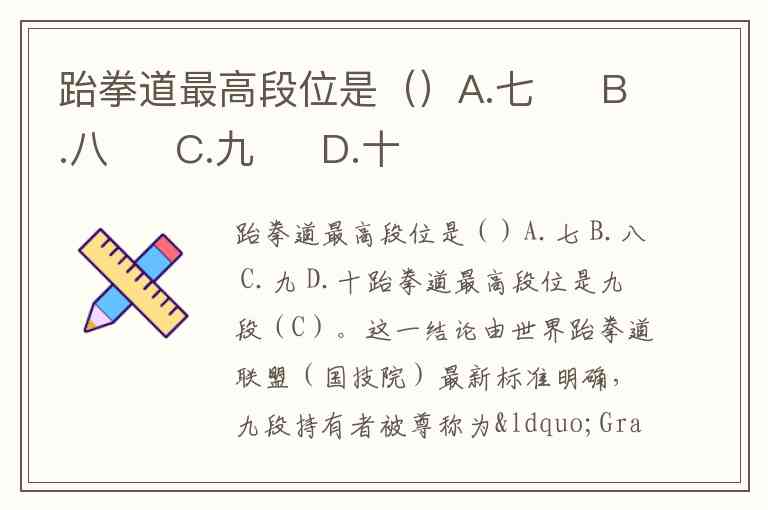 跆拳道最高段位是()A.七 B.八 C.九 D.十