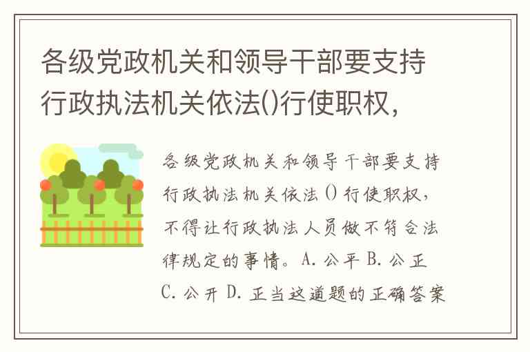 各级党政机关和领导干部要支持行政执法机关依法()行使职权,不得让行政执法人员做不符合法律规定的事情。A.公平 B.公正 C.公开 D.正当