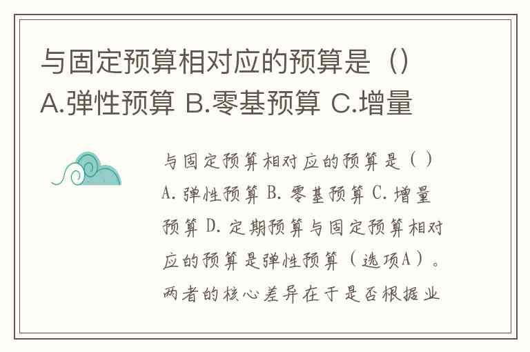 与固定预算相对应的预算是()A.弹性预算 B.零基预算 C.增量预算 D.定期预算