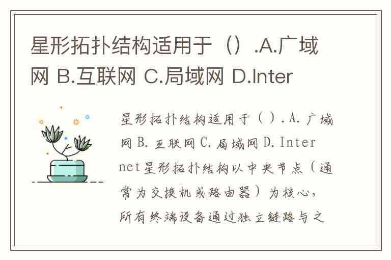 星形拓扑结构适用于().A.广域网 B.互联网 C.局域网 D.Internet