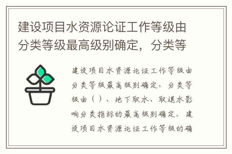 建设项目水资源论证工作等级的确定需综合多维度指标,其中分类等级由地表取水、地下取水和取退水影响三类指标的最高级别共同决定。这一分级体系旨在科学评估项目对区域水资源系统的影响程度,确保论证工作深度与潜在风险相匹配。