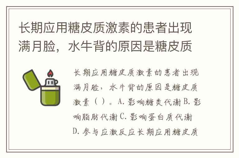 长期应用糖皮质激素的患者出现满月脸,水牛背的原因是糖皮质激素()。A.影响糖类代谢 B.影响脂肪代谢 C.影响蛋白质代谢 D.参与应激反应