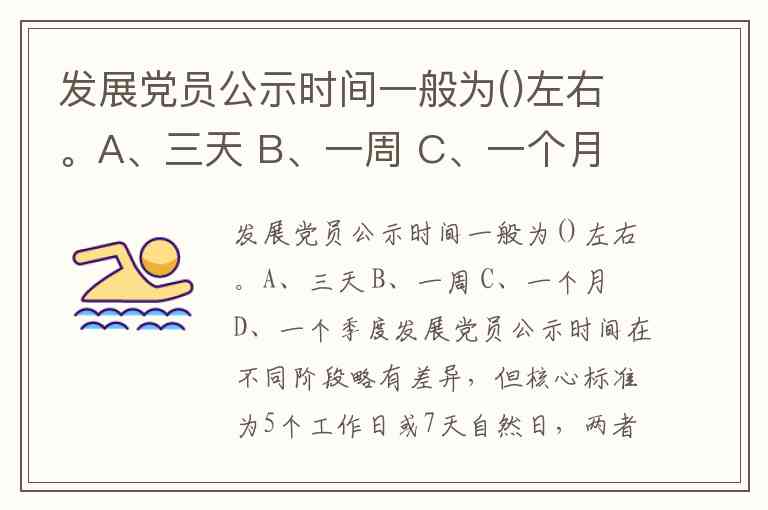 发展党员公示时间一般为()左右。A、三天 B、一周 C、一个月 D、一个季度