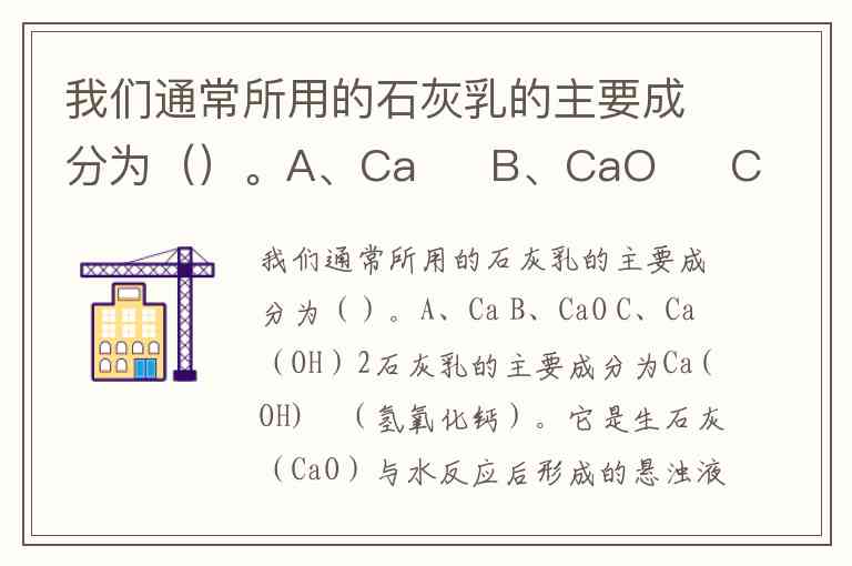 我们通常所用的石灰乳的主要成分为()。A、Ca B、CaO C、Ca(OH)2
