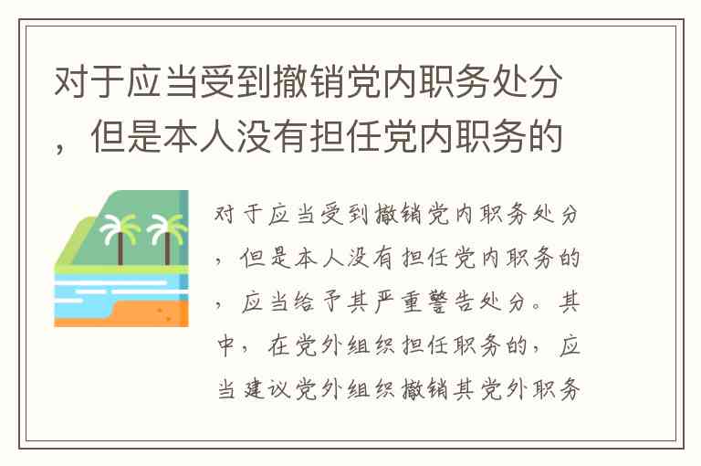 对于应当受到撤销党内职务处分,但是本人没有担任党内职务的,应当给予其严重警告处分。其中,在党外组织担任职务的,应当建议党外组织撤销其党外职务。A.党小组 B.培养联系人 C.党员 D.群众