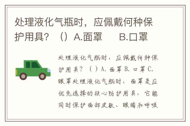 处理液化气瓶时,应佩戴何种保护用具?()A.面罩 B.口罩 C.眼罩