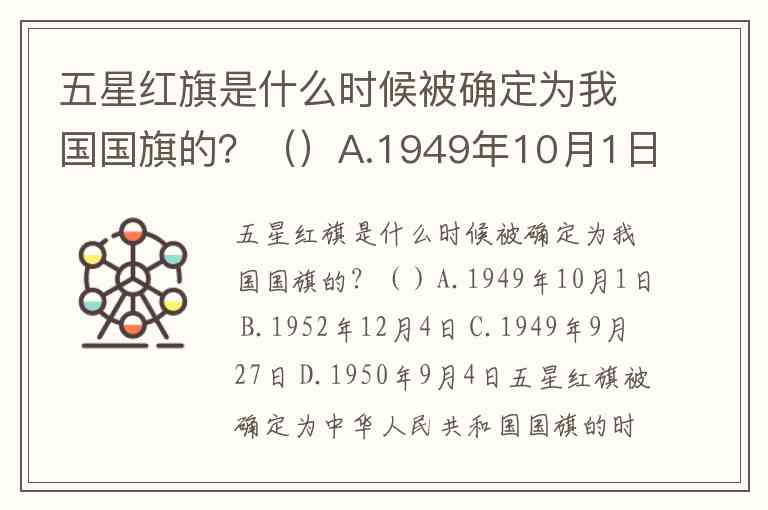 五星红旗是什么时候被确定为我国国旗的?()A.1949年10月1日 B.1952年12月4日 C.1949年9月27日 D.1950年9月4日