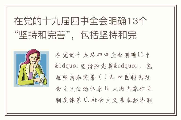 在党的十九届四中全会明确13个“坚持和完善”,包括坚持和完善()A.中国特色社会主义法治体系 B.人民当家作主制度体系 C.社会主义基本经济制度 D.中国特色社会主义行政体制 E.社会主义先进文化制度