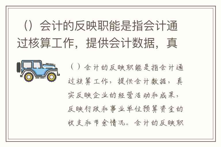 ()会计的反映职能是指会计通过核算工作,提供会计数据,真实反映企业的经营活动和成果,反映行政和事业单位预算资金的收支和节余情况。