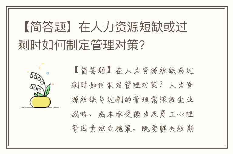 【简答题】在人力资源短缺或过剩时如何制定管理对策?