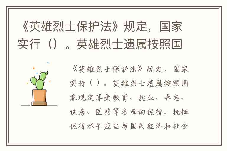 《英雄烈士保护法》规定,国家实行()。英雄烈士遗属按照国家规定享受教育、就业、养老、住房、医疗等方面的优待。抚恤优待水平应当与国民经济和社会发展相适应并逐步提高。A.英雄烈士抚恤制度 B.英雄烈士优待制度 C.英雄烈士荣誉制度 D.英雄烈士抚恤优待制度