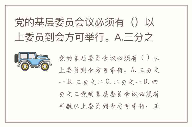 党的基层委员会议必须有()以上委员到会方可举行。A.三分之一 B.三分之二 C.二分之一 D.四分之三