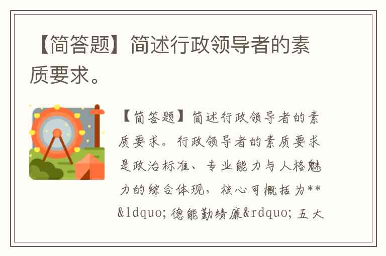 行政领导者的素质要求是政治标准、专业能力与人格魅力的综合体现,核心可概括为**“德能勤绩廉”五大维度**,这些要求既源自党政干部考核的制度规范,也反映了现代组织对管理者的能力期待。