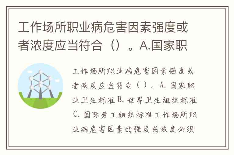 工作场所职业病危害因素强度或者浓度应当符合()。A.国家职业卫生标准 B.世界卫生组织标准 C.国际劳工组织标准