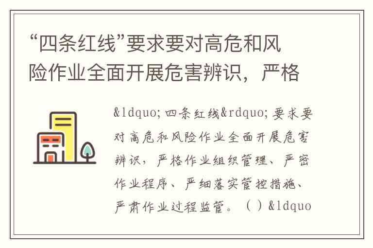 “四条红线”要求要对高危和风险作业全面开展危害辨识,严格作业组织管理、严密作业程序、严细落实管控措施、严肃作业过程监管。()