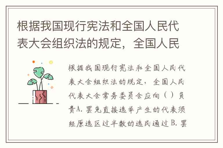 根据我国现行宪法和全国人民代表大会组织法的规定,全国人民代表大会常务委员会应向()负责A.罢免直接选举产生的代表须经原选区过半数的选民通过 B.罢免直接选举产生的代表,须将决议报送上一级人大常委会备案 C.罢免间接选举产生的代表须经原选举单位过半数的代表通过 D.罢免间接选举产生的代表,在代表大会闭会期间,须经常委会成员2/3多数通过
