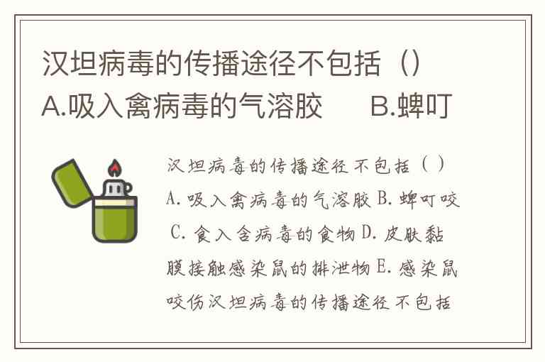 汉坦病毒的传播途径不包括()A.吸入禽病毒的气溶胶 B.蜱叮咬 C.食入含病毒的食物 D.皮肤黏膜接触感染鼠的排泄物 E.感染鼠咬伤