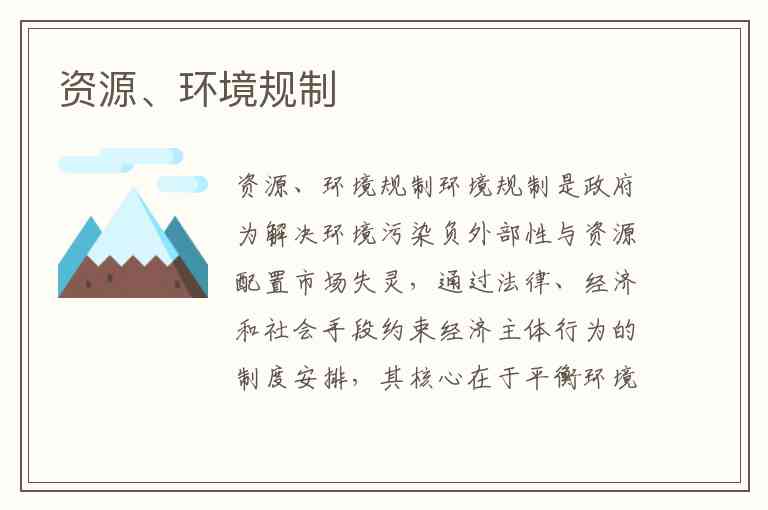环境规制是政府为解决环境污染负外部性与资源配置市场失灵,通过法律、经济和社会手段约束经济主体行为的制度安排,其核心在于平衡环境保护与经济发展,推动外部性内部化与多主体协同治理。当前中国已构建起命令控制型、市场激励型、公众参与型和自愿行动型“四维一体”的政策体系,正从行政主导转向市场与社会力量协同的治理模式。