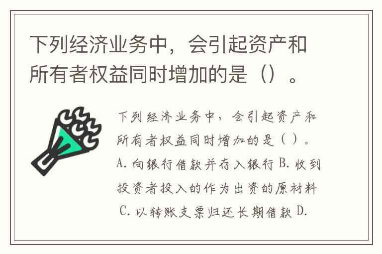 要判断哪项经济业务引起资产和所有者权益同时增加,需基于会计等式“资产=负债+所有者权益”分析:资产增加需伴随负债或所有者权益等额增加,题目要求所有者权益同步增加。
