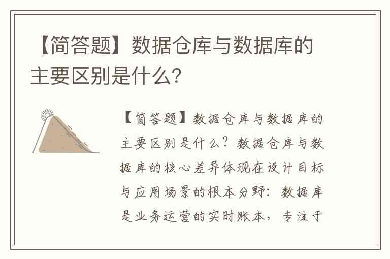 【简答题】数据仓库与数据库的主要区别是什么?