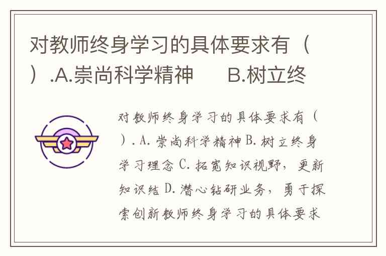 对教师终身学习的具体要求有().A.崇尚科学精神 B.树立终身学习理念 C.拓宽知识视野,更新知识结 D.潜心钻研业务,勇于探索创新