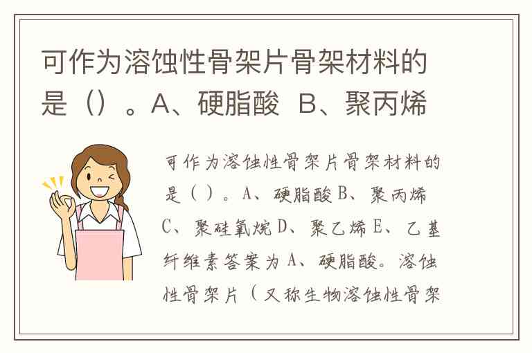 可作为溶蚀性骨架片骨架材料的是()。A、硬脂酸 B、聚丙烯 C、聚硅氧烷 D、聚乙烯 E、乙基纤维素