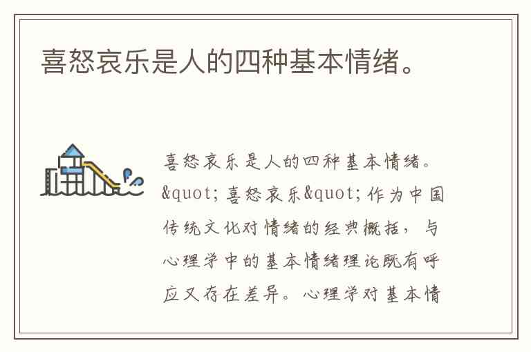 喜怒哀乐是人的四种基本情绪。