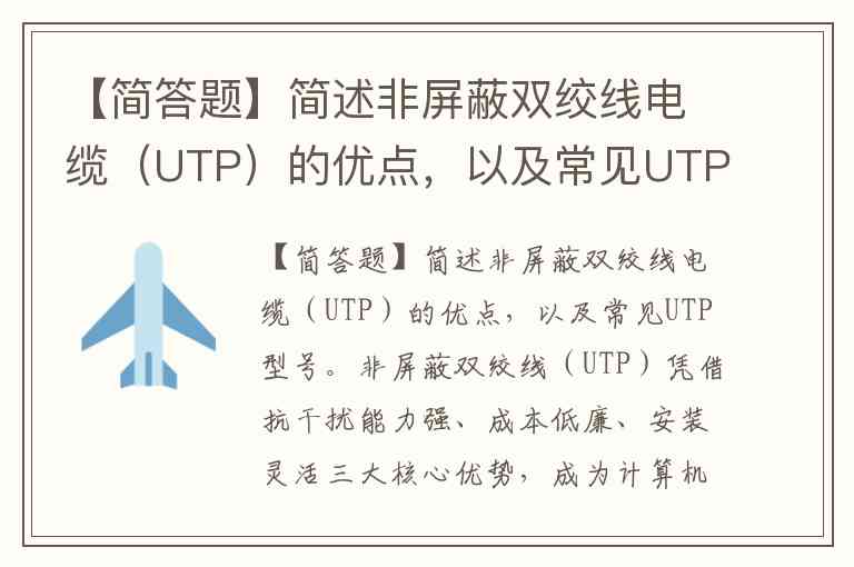 【简答题】简述非屏蔽双绞线电缆(UTP)的优点,以及常见UTP型号。