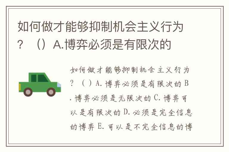 如何做才能够抑制机会主义行为?()A.博弈必须是有限次的 B.博弈必须是无限次的 C.博弈可以是有限次的 D.必须是完全信息的博弈 E.可以是不完全信息的博弈