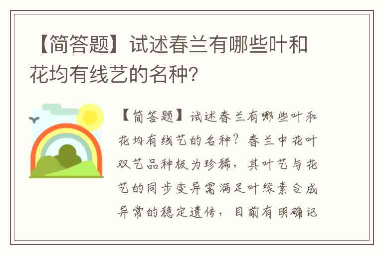 【简答题】试述春兰有哪些叶和花均有线艺的名种?
