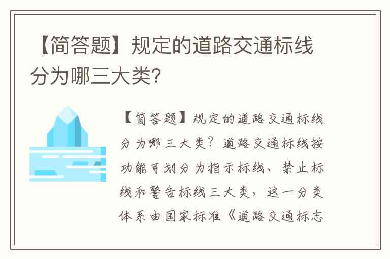 【简答题】规定的道路交通标线分为哪三大类?