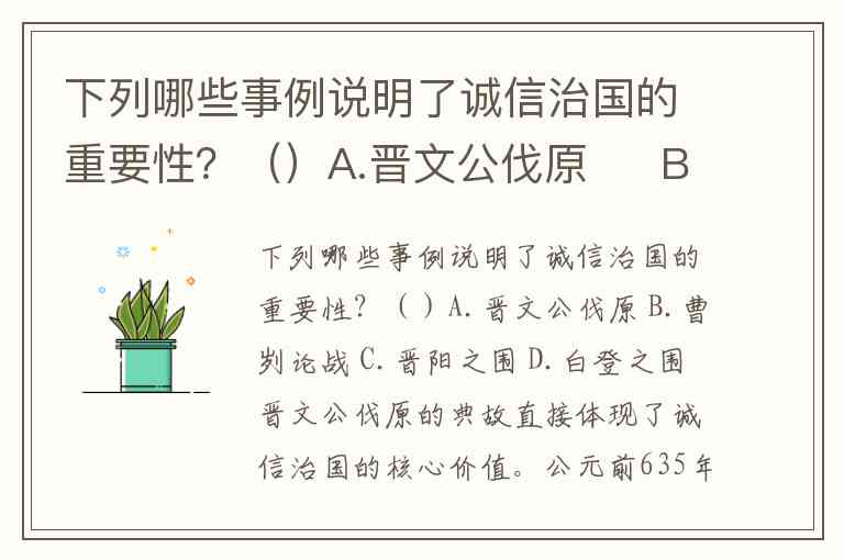 下列哪些事例说明了诚信治国的重要性?()A.晋文公伐原 B.曹刿论战 C.晋阳之围 D.白登之围