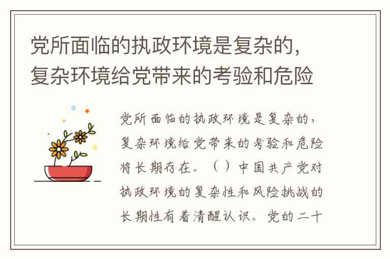 党所面临的执政环境是复杂的,复杂环境给党带来的考验和危险将长期存在。()