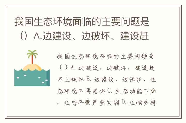 我国生态环境面临的主要问题是()A.边建设、边破坏、建设赶不上破坏 B.边建设、边保护、生态环境不再恶化 C.生态功能下降,生态平衡严重失调 D.生物多样性锐减
