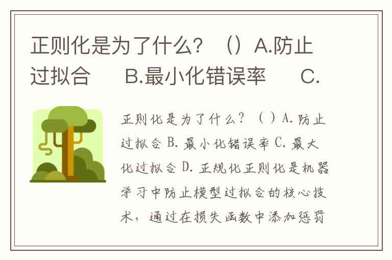 正则化是为了什么?()A.防止过拟合 B.最小化错误率 C.最大化过拟合 D.正规化