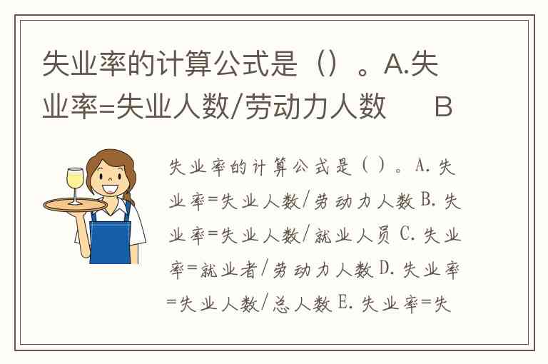 失业率的计算公式是()。A.失业率=失业人数/劳动力人数 B.失业率=失业人数/就业人员 C.失业率=就业者/劳动力人数 D.失业率=失业人数/总人数 E.失业率=失业人数/(失业人数+就业人数)