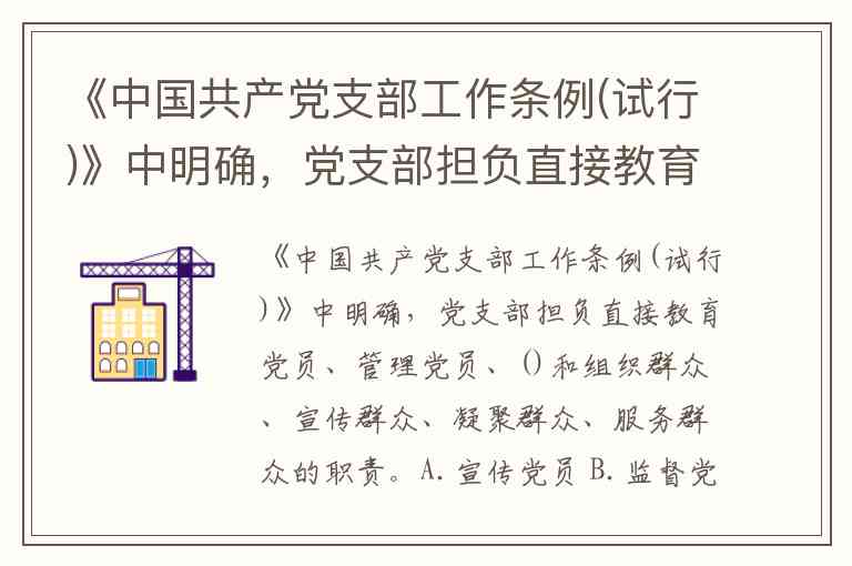 《中国共产党支部工作条例(试行)》中明确,党支部担负直接教育党员、管理党员、()和组织群众、宣传群众、凝聚群众、服务群众的职责。A.宣传党员 B.监督党员 C.服务党员 D.处罚党员