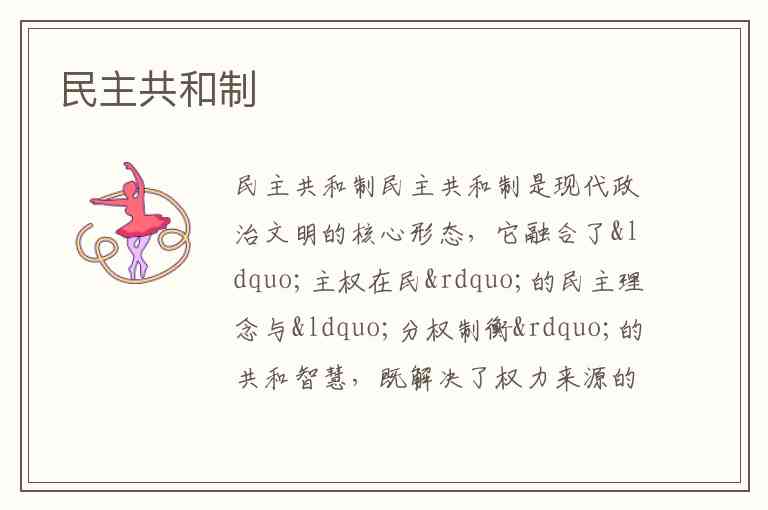 民主共和制是现代政治文明的核心形态,它融合了“主权在民”的民主理念与“分权制衡”的共和智慧,既解决了权力来源的合法性问题,又构建了权力运行的稳定框架。这一制度并非单一模板,而是在历史长河中不断演化的政治实践——从古希腊直接民主的朴素尝试,到古罗马混合政体的权力平衡实验,最终在启蒙运动后发展为兼具人民授权与制度约束的现代体系。