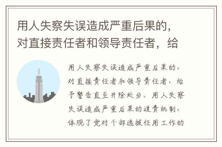 用人失察失误造成严重后果的,对直接责任者和领导责任者,给予警告直至开除处分。