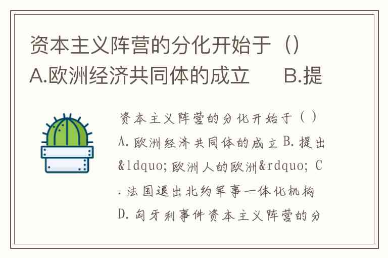 资本主义阵营的分化开始于()A.欧洲经济共同体的成立 B.提出“欧洲人的欧洲” C.法国退出北约军事一体化机构 D.匈牙利事件