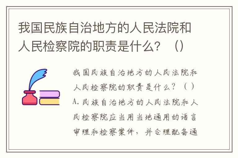 我国民族自治地方的人民法院和人民检察院的职责是什么?()A.民族自治地方的人民法院和人民检察院应当用当地通用的语言审理和检察案件,并合理配备通晓当地通用的少数民族语言文字的人员 B.对于不通晓当地通用的语言文字的诉讼参与人,应当为他们提供翻译 C.法律文书应当根据实际需要,使用当地通用的一种或者几种文字 D.保障各民族公民都有使用本民族语言文字进行诉讼的权利