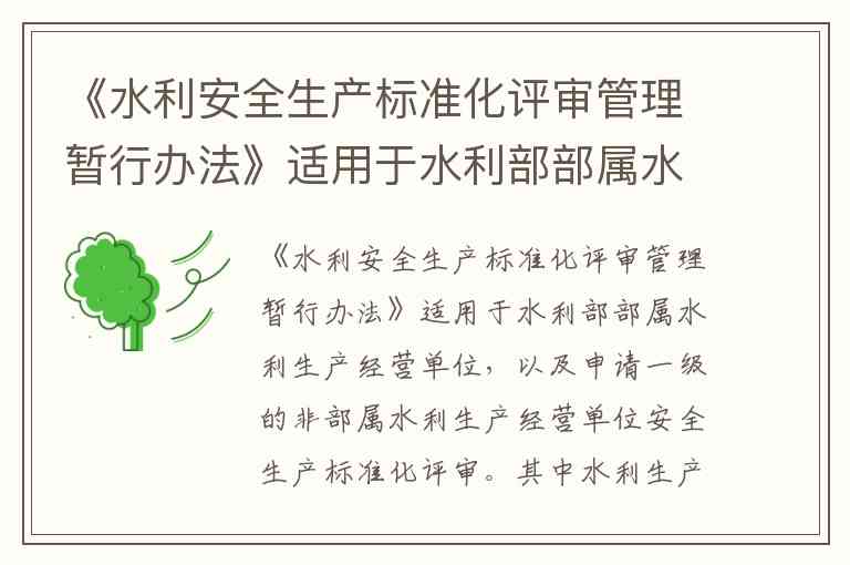 根据《水利安全生产标准化评审管理暂行办法》,水利生产经营单位的核心定义包含三类主体:水利工程项目法人、从事水利水电工程施工的企业和水利工程管理单位。这一界定在水利部相关文件中被反复明确,例如多个权威解读均指出,该分类覆盖了水利工程从建设到运营的全链条主体,其中项目法人特指承担工程组织建设责任的主体,施工企业需具备相应资质,管理单位则负责已建成工程的日常运行维护。