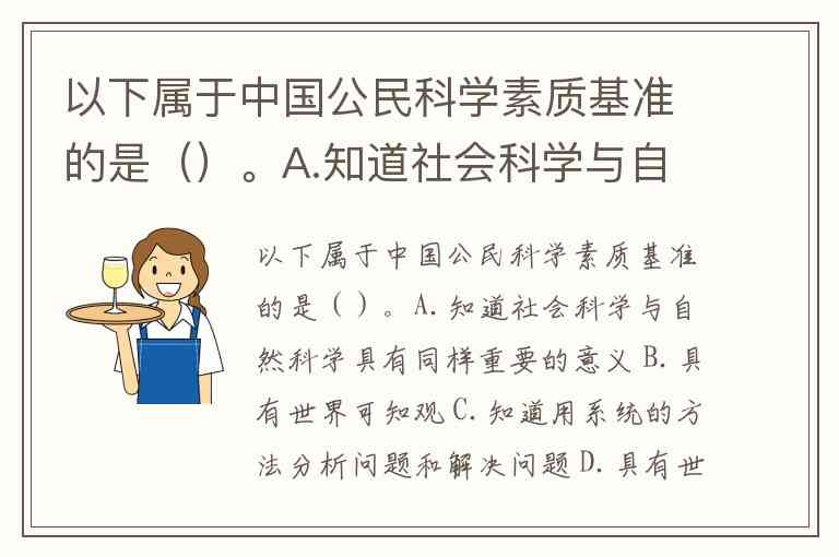 以下属于中国公民科学素质基准的是()。A.知道社会科学与自然科学具有同样重要的意义 B.具有世界可知观 C.知道用系统的方法分析问题和解决问题 D.具有世界物质观