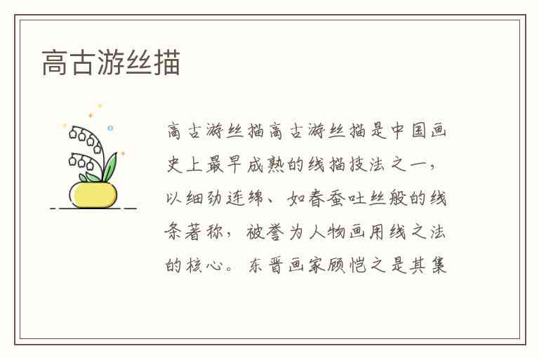 高古游丝描是中国画史上最早成熟的线描技法之一,以细劲连绵、如春蚕吐丝般的线条著称,被誉为人物画用线之法的核心。东晋画家顾恺之是其集大成者,他在《女史箴图》《洛神赋图》中以"紧劲联绵,循环超忽"的线条,将仕女衣袂的飘逸与肌肤的细腻展现得淋漓尽致。这种技法并非简单的"细匀",而是通过微妙的提按转折表现形体空间——在《女史箴图》抱童仕女的袖摆处,线条随弧度产生粗细变化,遵循"逢转必有提按"的规律,形成含蓄的断续感。