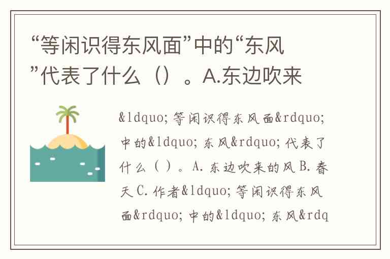 “等闲识得东风面”中的“东风”代表了什么()。A.东边吹来的风 B.春天 C.作者