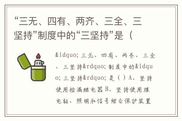 “三无、四有、两齐、三全、三坚持”制度中的“三坚持”是()A、坚持使用检漏继电器 B、坚持使用煤电钻、照明和信号综合保护装置 C、坚持使用风电和瓦斯电闭锁 D、坚持电气防爆检查 E、坚持正确使用保险丝