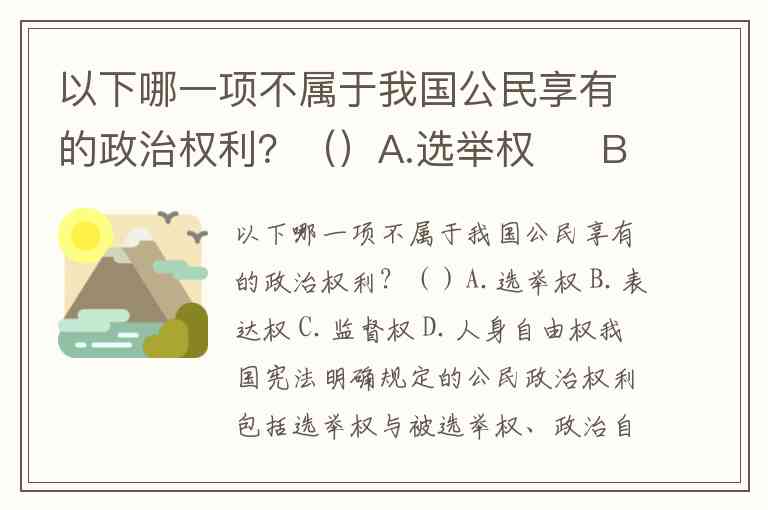 以下哪一项不属于我国公民享有的政治权利?()A.选举权 B.表达权 C.监督权 D.人身自由权