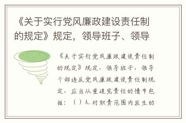 综上,正确答案为 A、B。这一规定体现了从严治党中“从严追责”的原则,通过明确从重情节强化制度刚性,确保责任追究不流于形式。实践中,准确区分一般责任与从重情节,是落实党风廉政建设责任制的关键环节。
